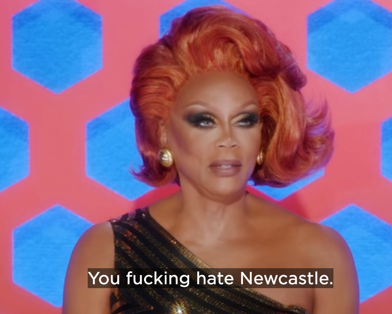 So, Ru went through and basically got in everyone’s heads - because you always listen to what Ru says - and sabotaged what could have been some funny Down Under roasting of places. We had Kween Kong, who has usually struggled with comedy challenges anyway, choosing to make hers more hypothetical than based in place as a result, and people like Molly Poppinz valiantly tried to roast her hometown and cater to Ru - with the result being RuPaul confidently claiming “I understand - you fucking HATE Newcastle”.